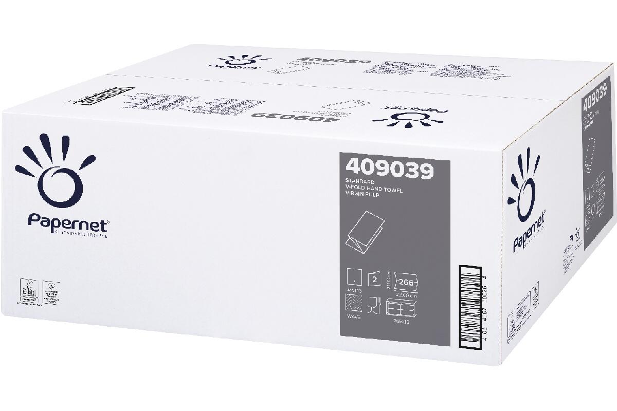 Ručník papírový skládaný V Papernet Standard, 2vrstvý, celulóza, 22 x 21 cm, 3 990 ks, bílý (409039)