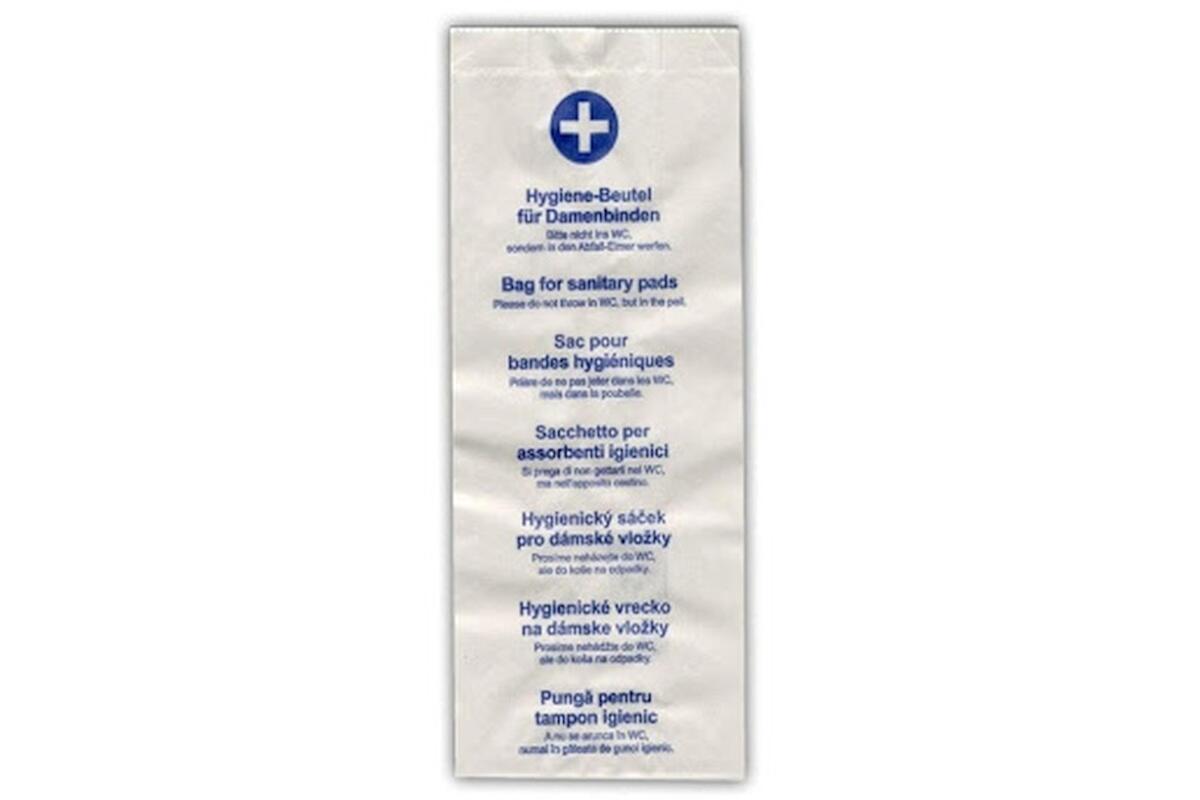 Sáček hygienický, papírový, 11+4x 28 cm, potisk, bílý