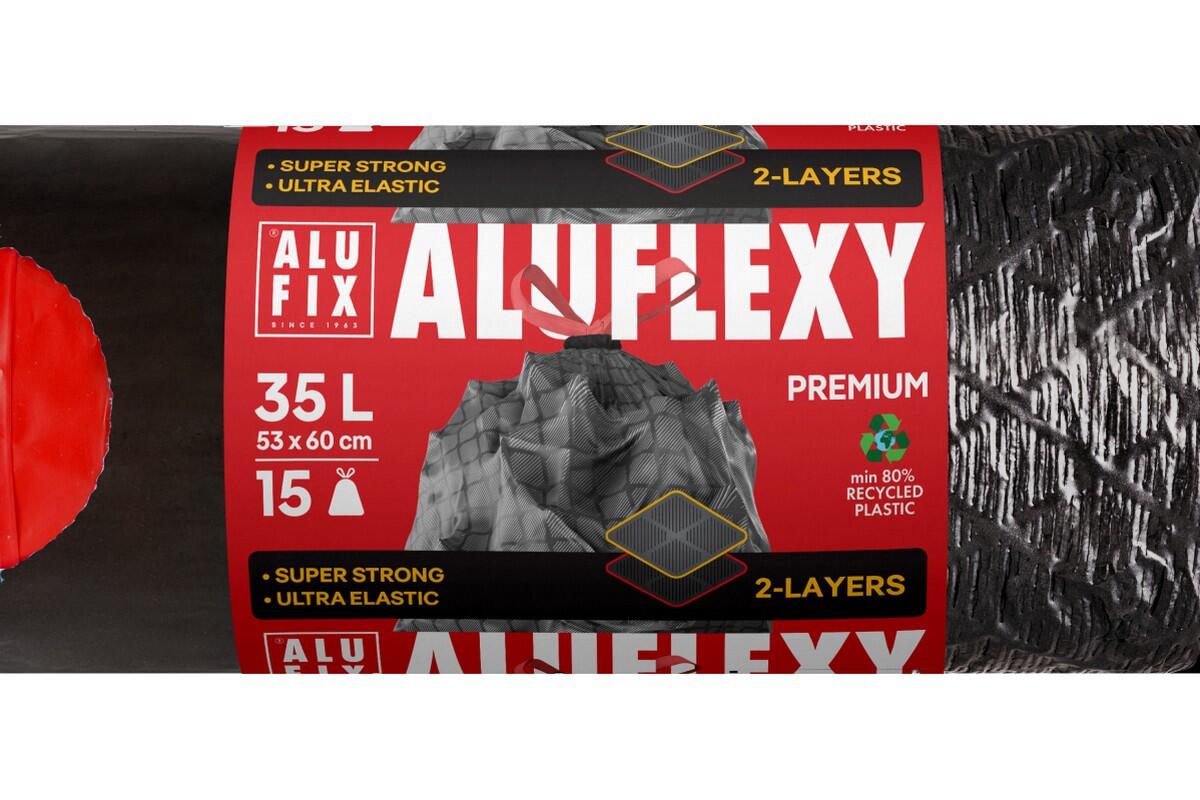 Sáček na odpad Aluflexy, 53 x 60 cm, 35 l, 28 mikronů, zatahovací, 15 ks, stříbrnočerný