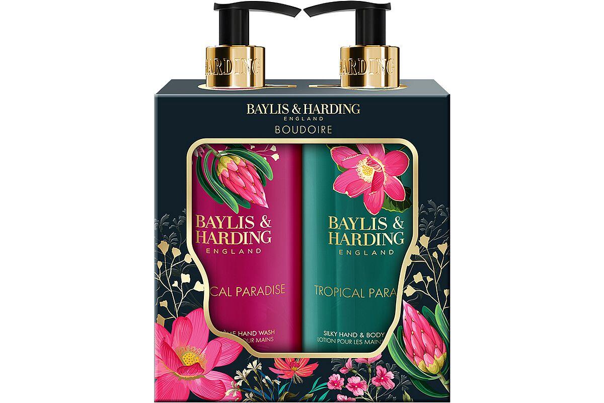 Sada kosmetická Baylis & Harding Boudoire, tekuté mýdlo a mléko na ruce, 2 x 300 ml, tropical paradise