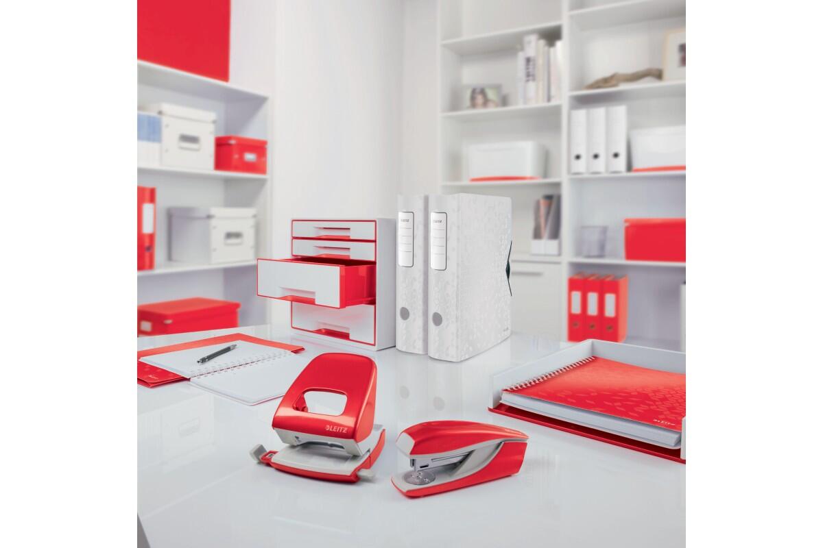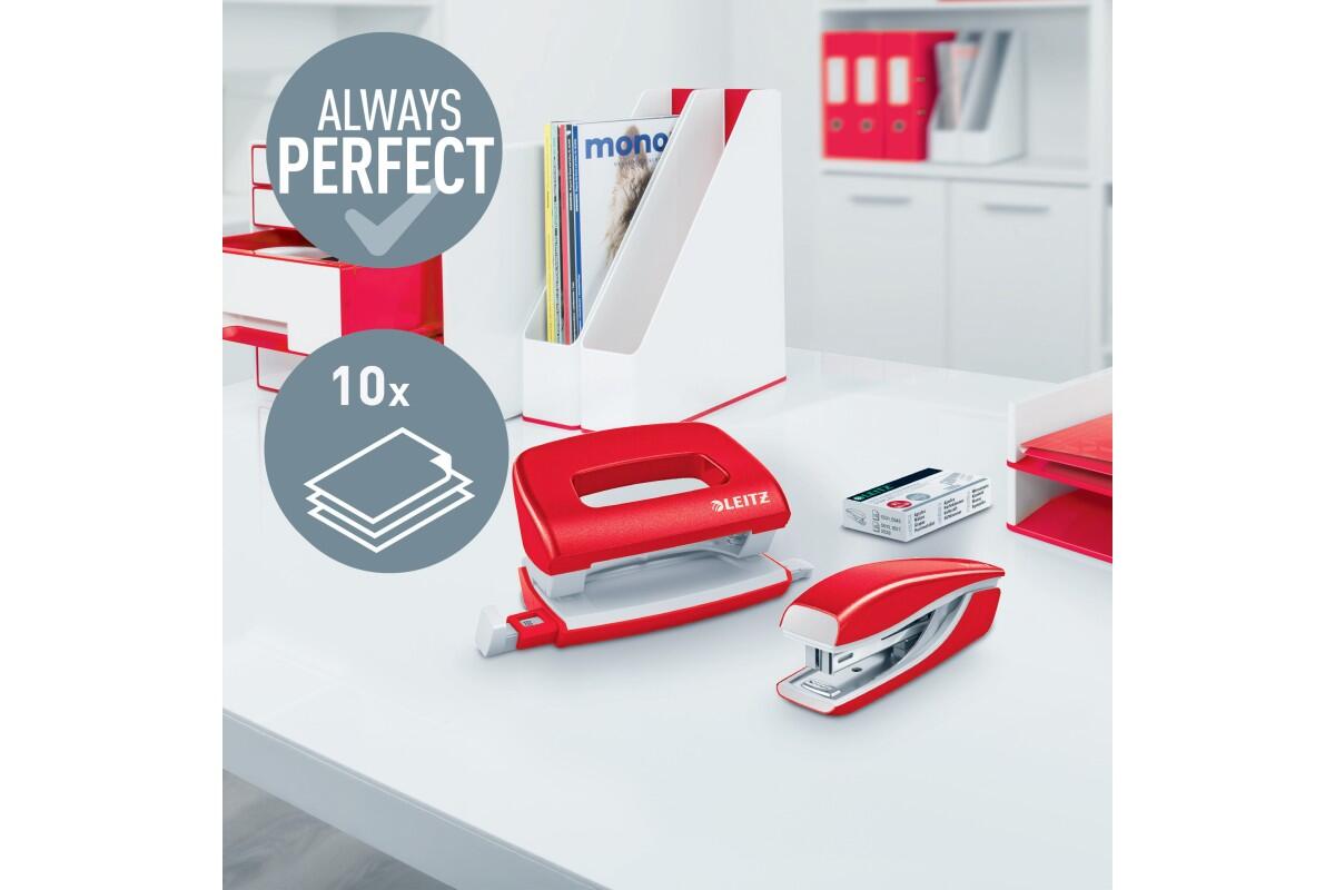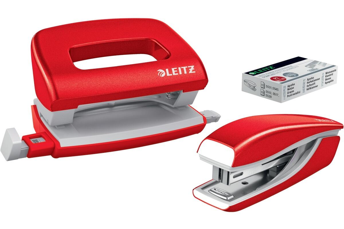 Sada sešívačka Leitz WOW mini 5528 a děrovačka Leitz WOW mini 5060, červená