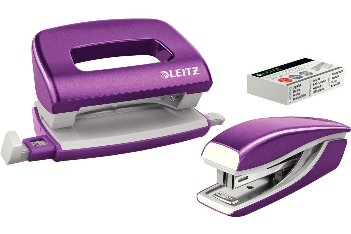 Sada sešívačka Leitz WOW mini 5528 a děrovačka Leitz WOW mini 5060, fialová