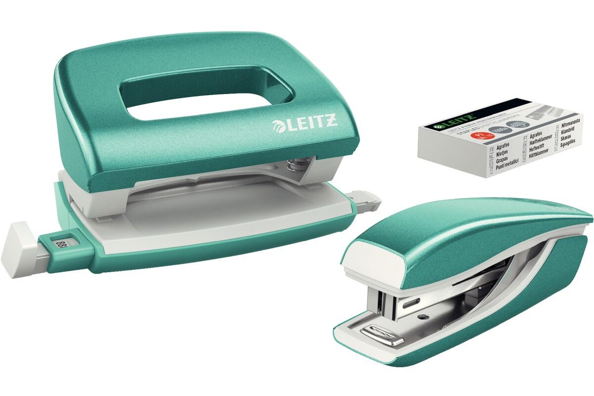Sada sešívačka Leitz WOW mini 5528 a děrovačka Leitz WOW mini 5060, ledově modrá