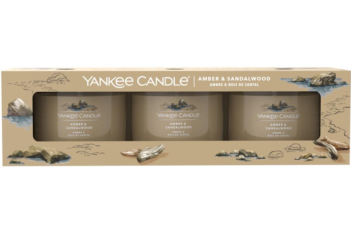 Sada svíček Yankee Candle, ve skle, votivní, 3 ks, Amber & Sandalwood