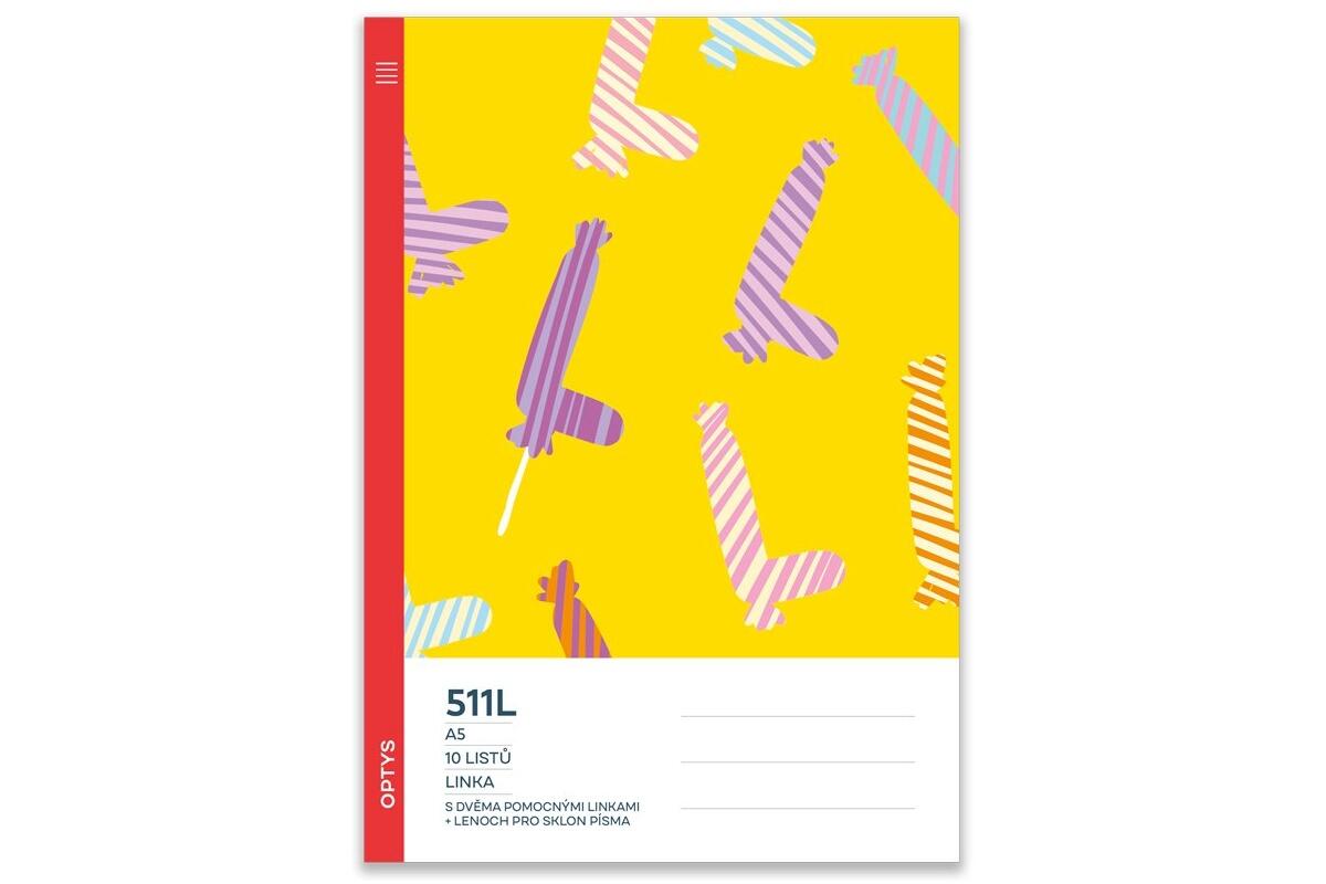 Sešit A5 511L Optys, linkovaný, výška linky 20 mm + 2 pomocné linky, 10 listů