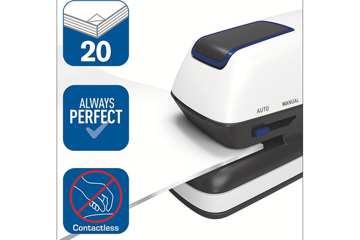 Sešívačka elektrická Rapid Optima Grip, 20 listů, bílá