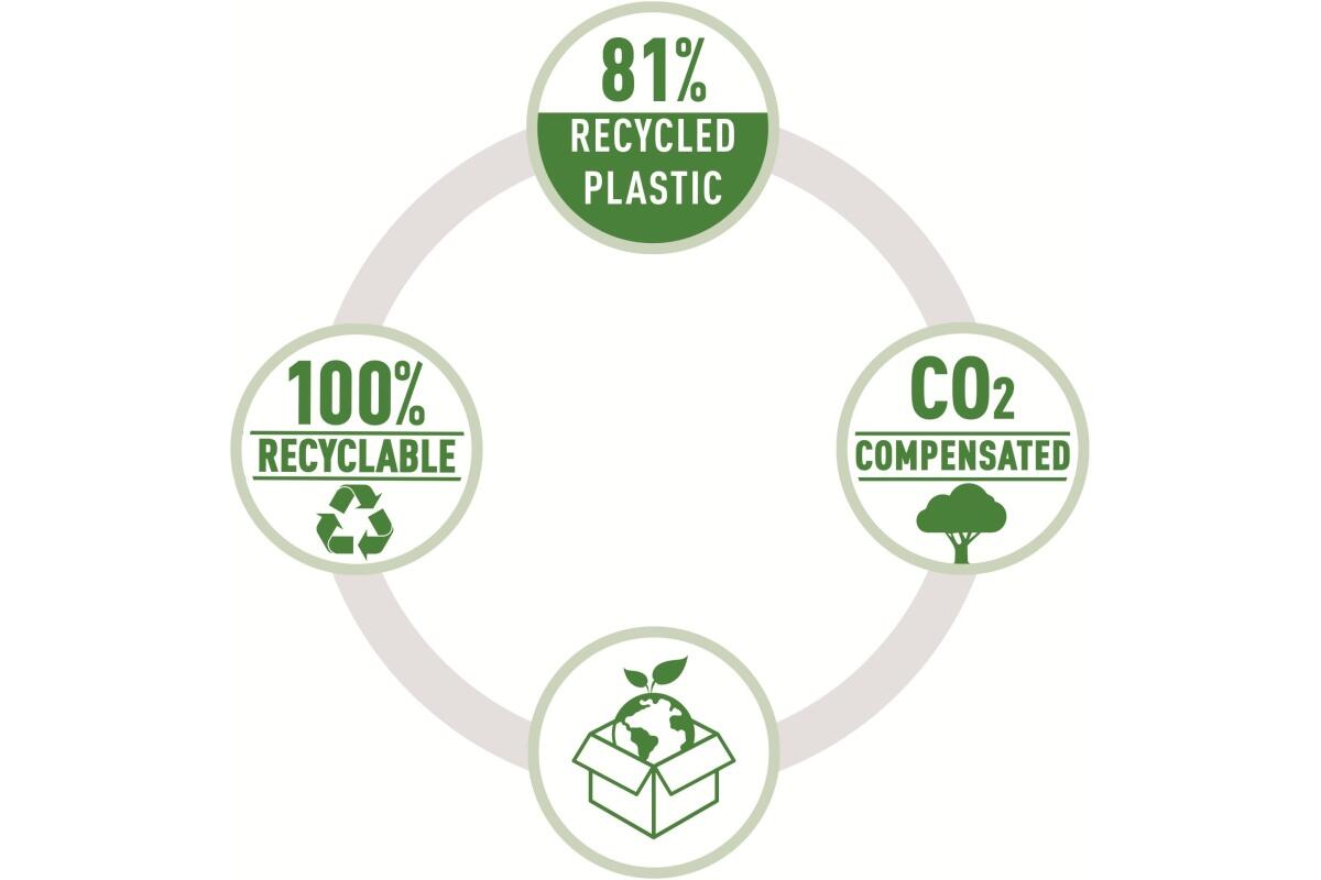 - vyrobeno z 81 % z recyklovaného postspotřebního plastu