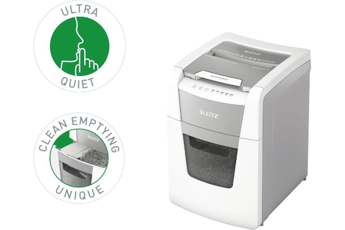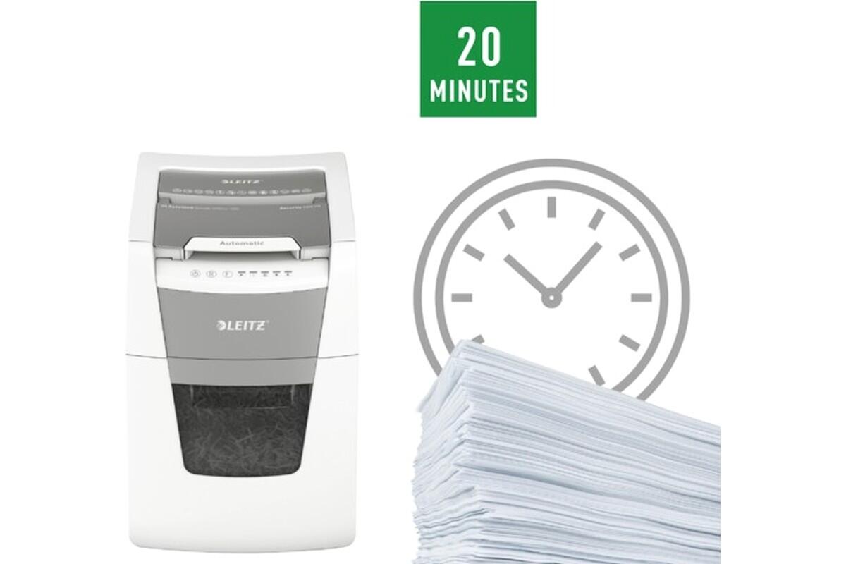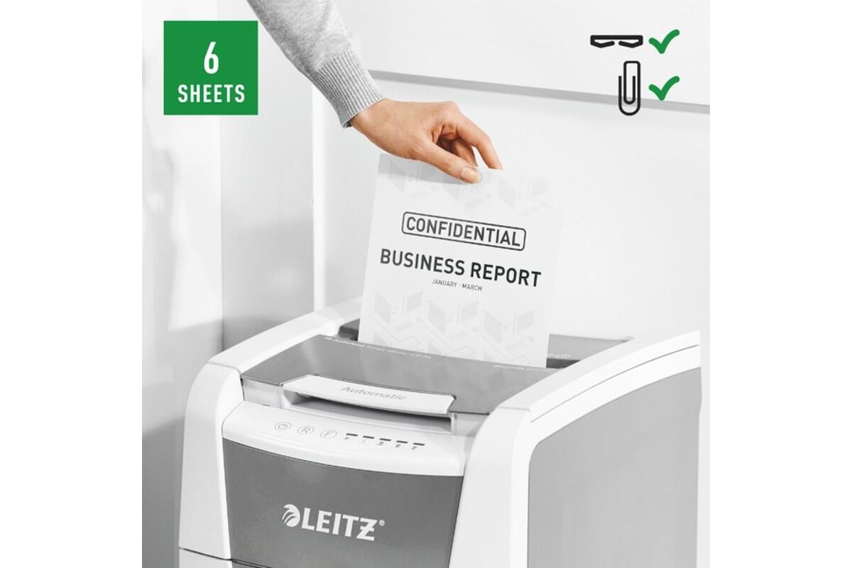 - vysoká bezpečnost a vynikající výkon s touto skartovačkou s automatickým podáváním, s funkcí proti zaseknutí papíru, tichou a s dlouhým provozem (20 minut)