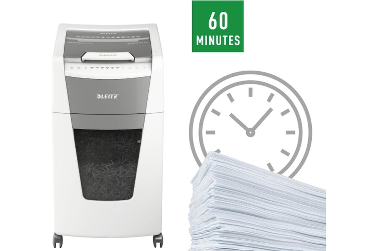 - důvěrná bezpečnost a vynikající výkon s touto skartovačkou s automatickým podáváním, s funkcí proti zaseknutí papíru, tichou a s dlouhým provozem (60 minut)