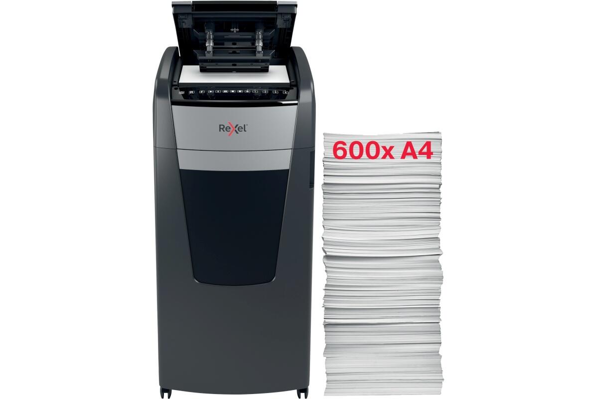 Skartovač Rexel Optimum AutoFeed+ 600X, 4x30 mm, DIN P-4, 600/15 listů, 110 l