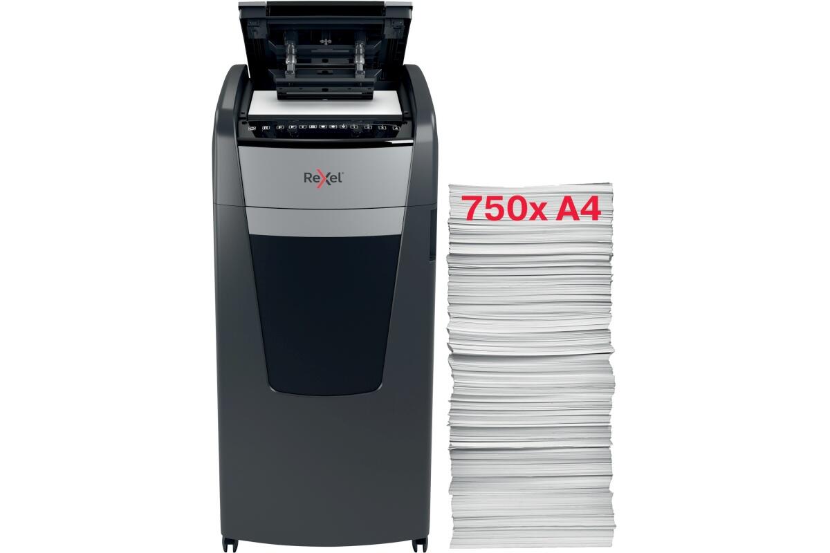 Skartovač Rexel Optimum AutoFeed+ 750X, 4x30 mm, DIN P-4, 750/20 listů, 140 l