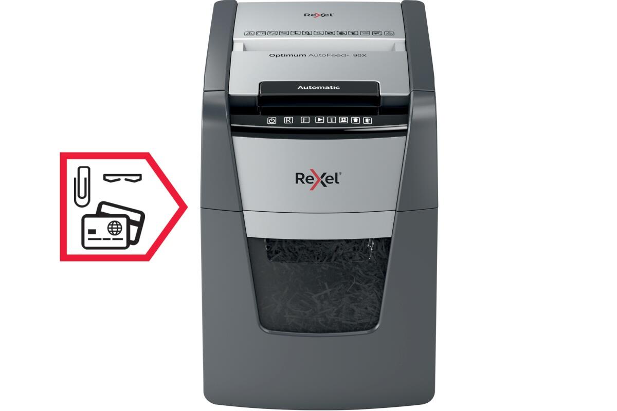 Skartovač Rexel Optimum AutoFeed+ 90X, 4x28 mm, DIN P-4, 90/8 listů, 34 l