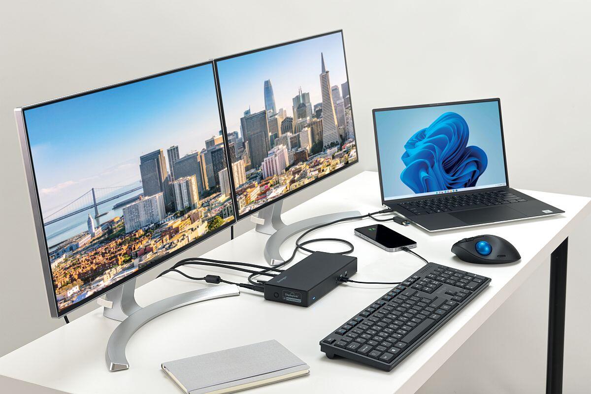 - jedná se o všestrannou dokovací stanici, která podporuje nejnovější notebooky s rozhraním USB-C® i starší notebooky s rozhraním USB-A - včetně podpory dvou monitorů pro notebooky MacBook M1/M2