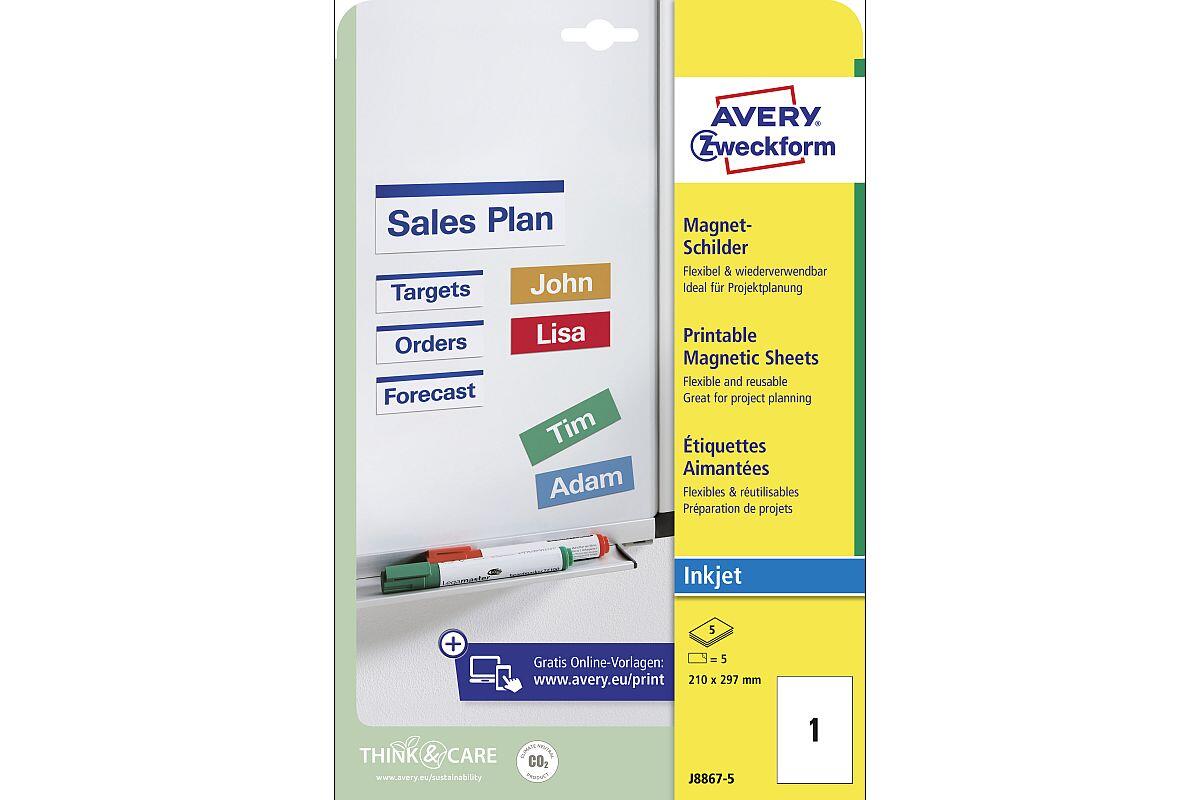 Štítek magnetický Avery Zweckform, 210 x 297 mm, 5 archů, bílý