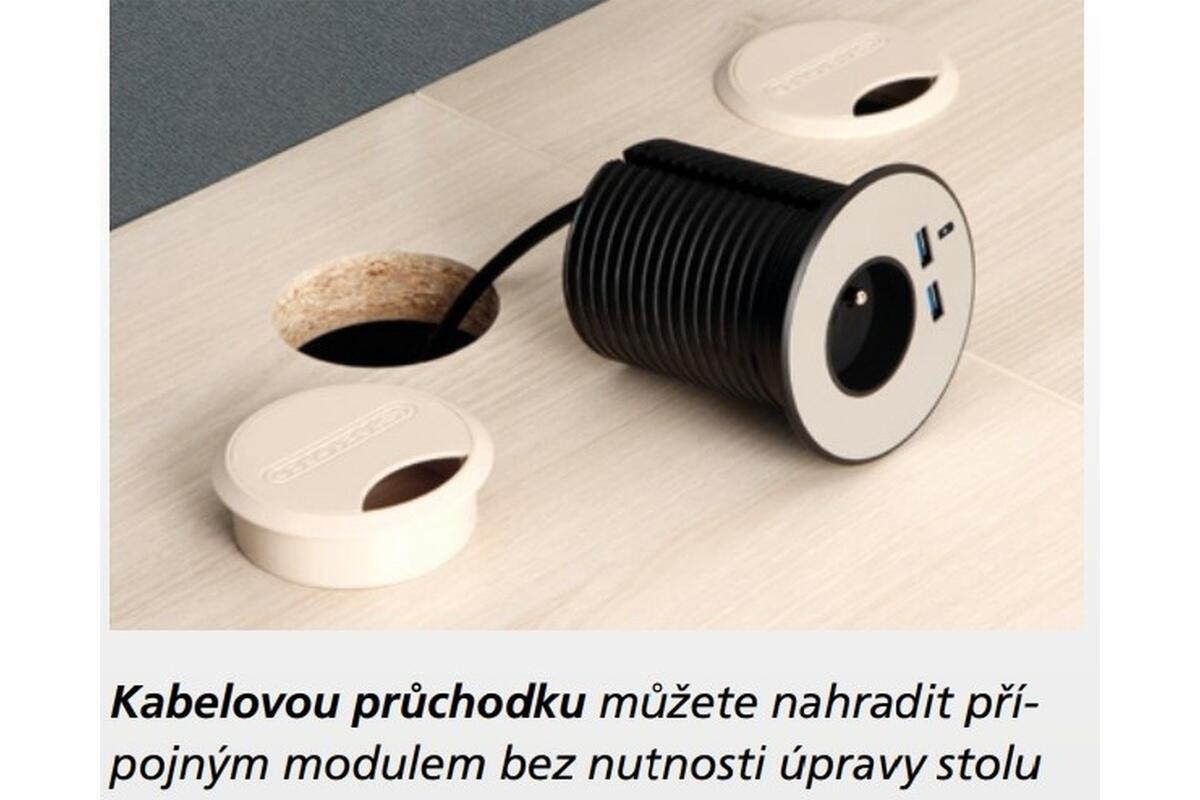- o kabely od PC či stolní lampy se postará praktická průchodka, která kabely jednoduše svede pod desku
