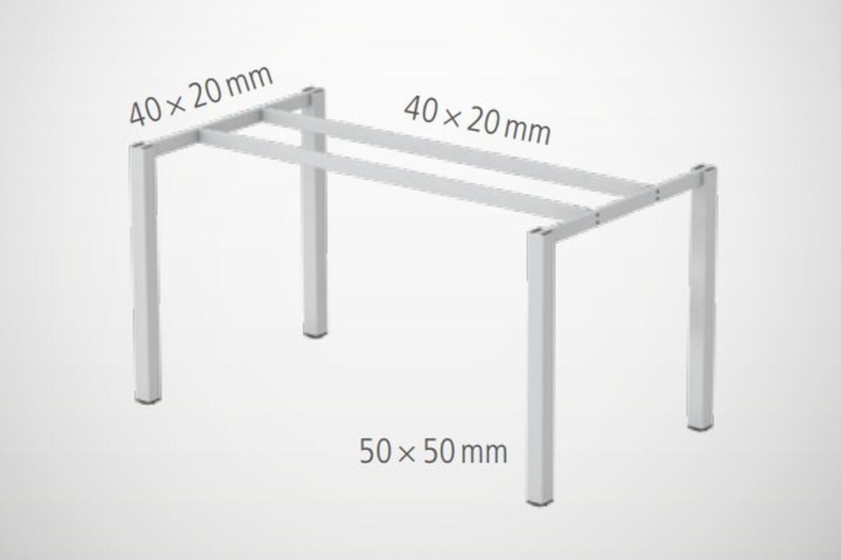 - kovové podnoží se skládá z nohou vyrobených ze čtyřhranného profilu 50x50 mm a spojovacích dílců, které mají průřez 40x20 mm, dohromady tvoří pevnou, samonostnou podnož