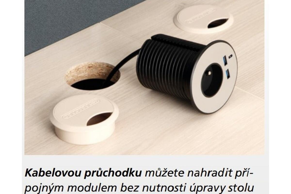 - o kabely od PC či stolní lampy se postará praktická průchodka, která kabely jednoduše svede pod desku, kde si s nimi poradí chytře zkonstruované držáky