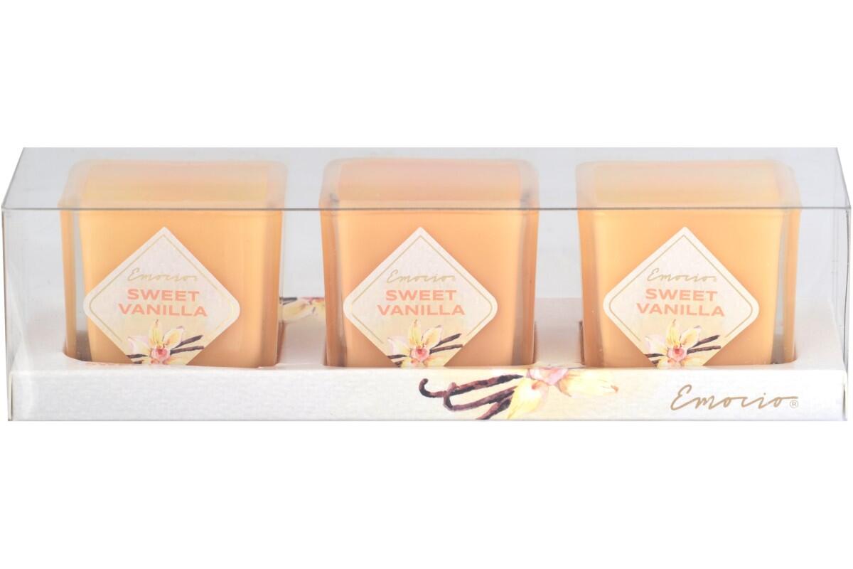 Svíčka vonná Emocio, ve skle, 533 g, v krabičce, 3 ks, sweet vanilla