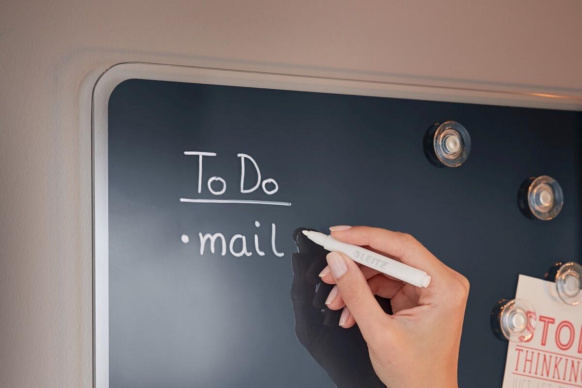 - skleněná magnetická tabule na psaní Leitz Cosy je nástroj pro psaní poznámek, který lze opakovaně používat