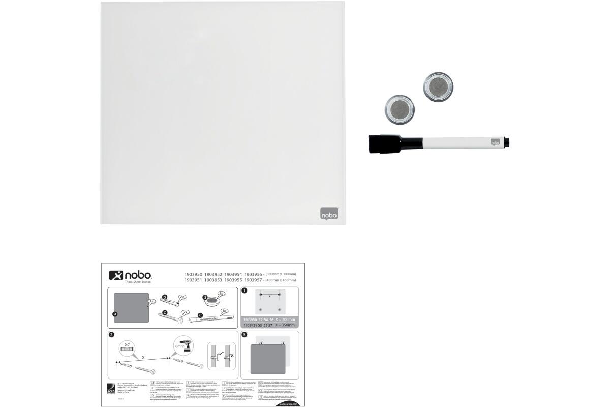 - dodáváno s popisovači Nobo pro suché stírání a sadou extra silných magnetů pro skleněné tabule Nobo