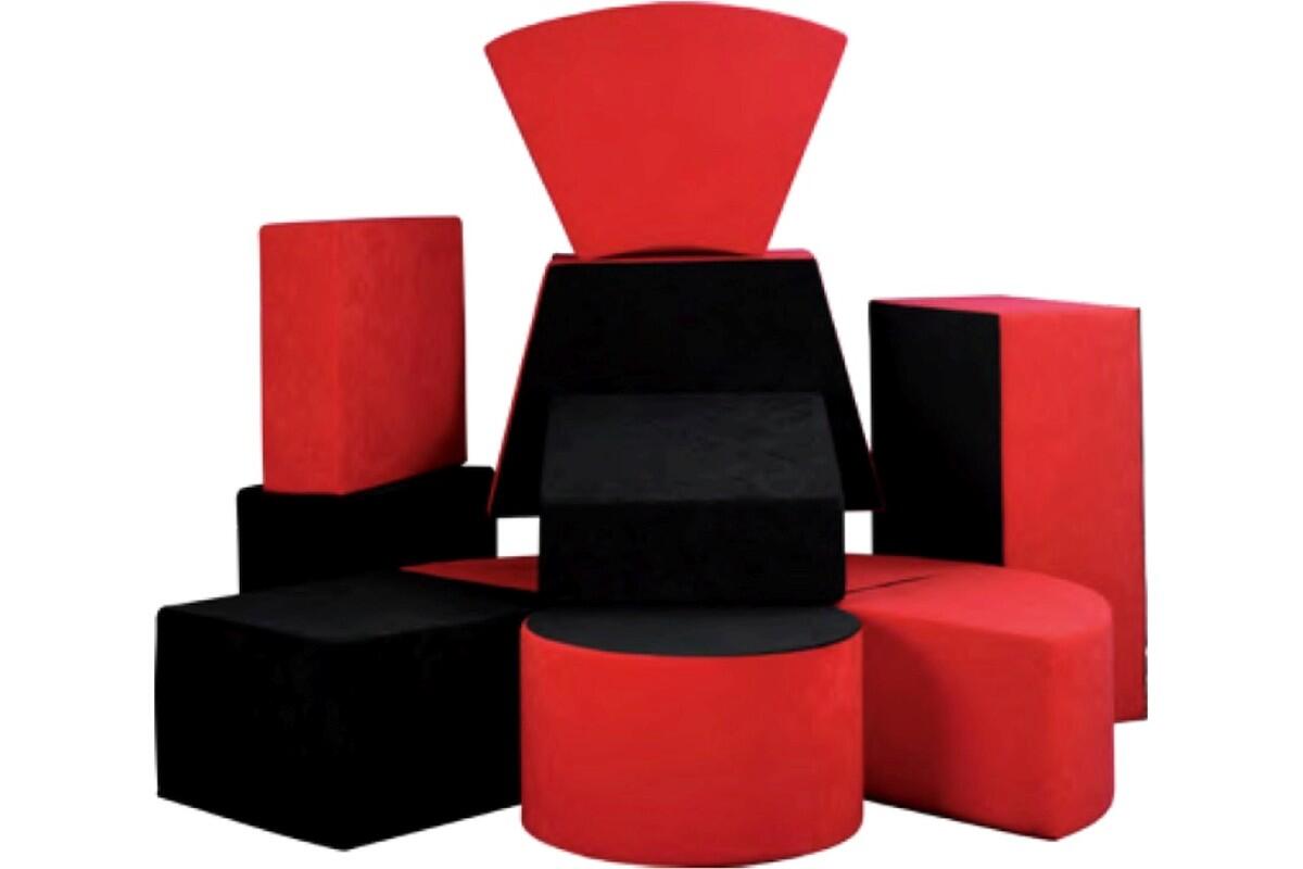 Taburet Creative 3, kulatý, trojúhelník s výsečí, červeno-černá Suedine 2, 21
