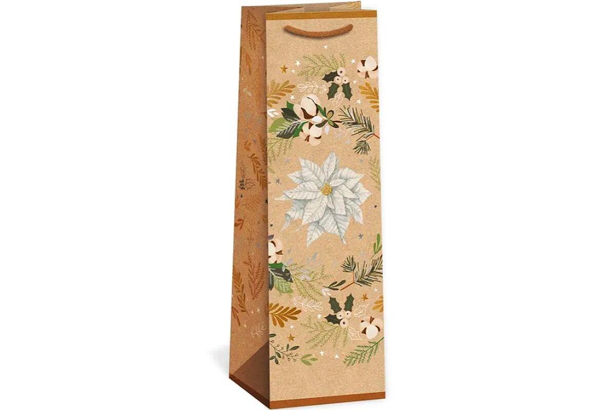 Taška dárková, 11 x 10 x 36,0 cm, na láhev, papírová, vánoční, natur, design 0071