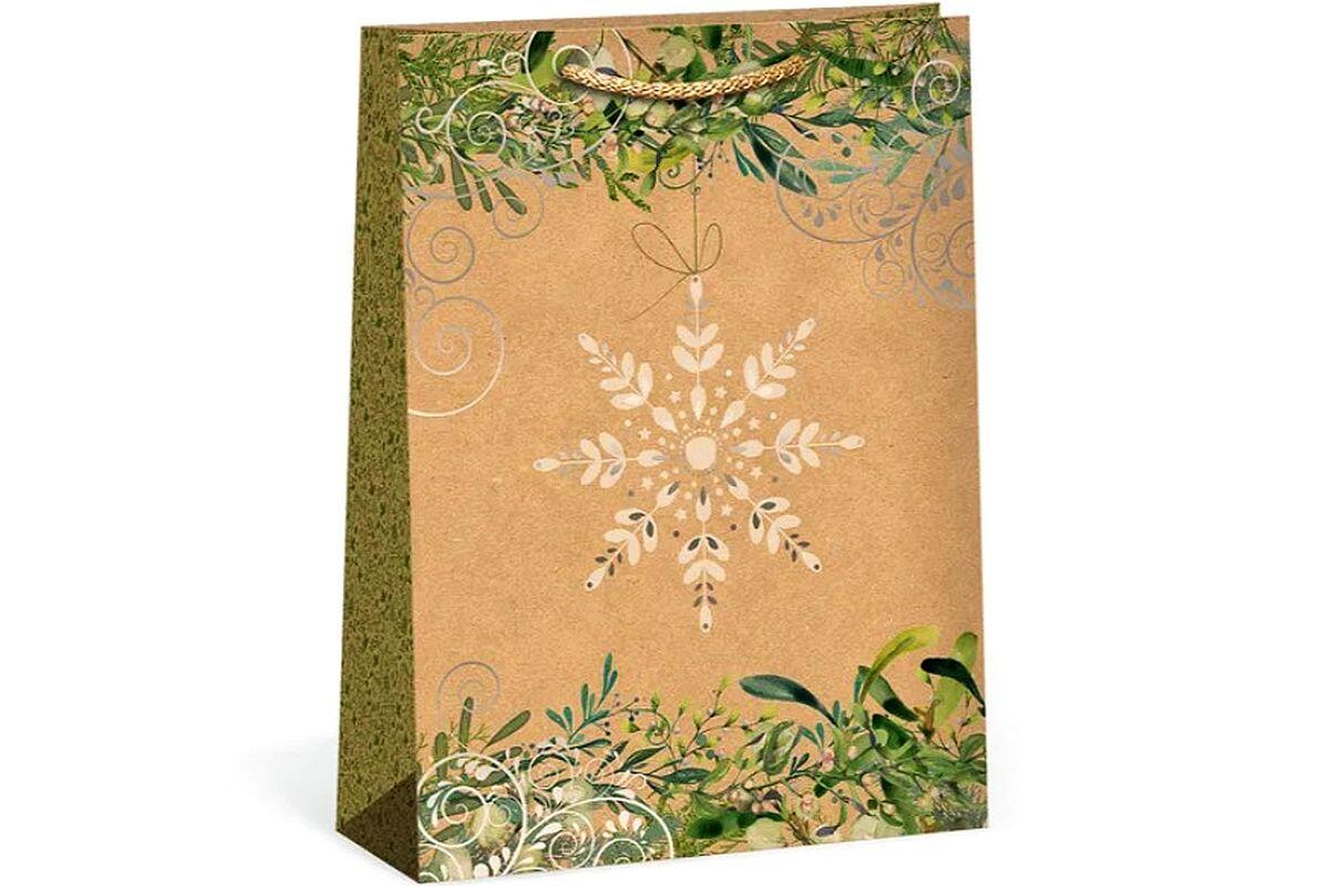 Taška dárková, 23,3 x 11 x 31,3 cm, papírová, vánoční, natur