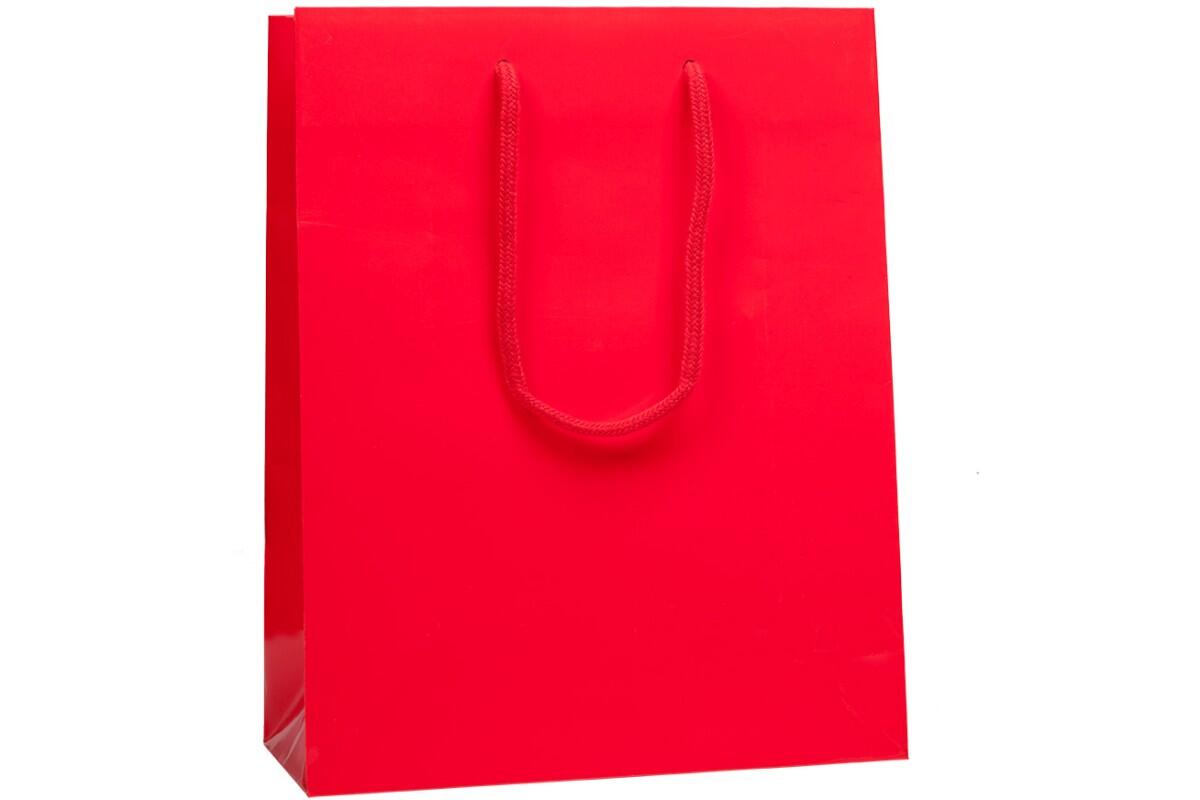 Taška dárková, 25 x 11 x 31 cm, papírová, bavlněná ucha, lesklá laminace, červená