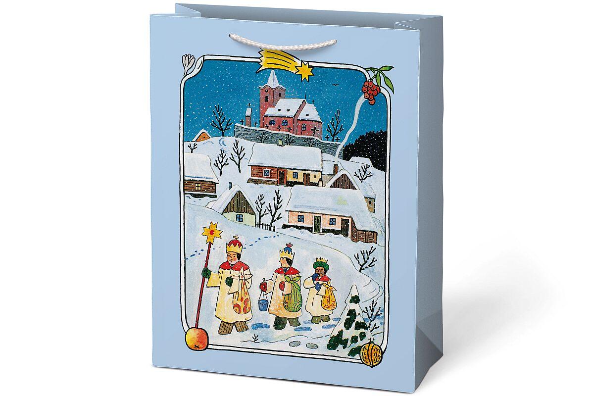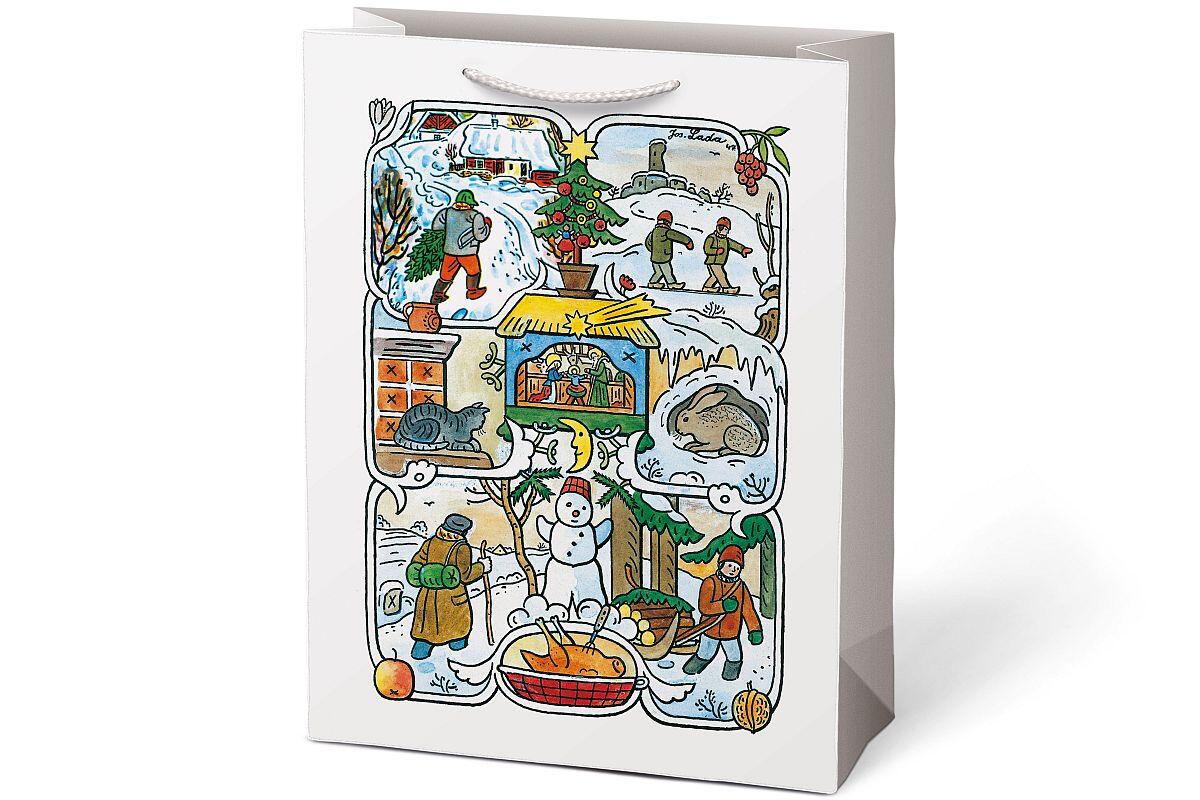 - dárková papírová taška s vánočním motivem Josefa Lady