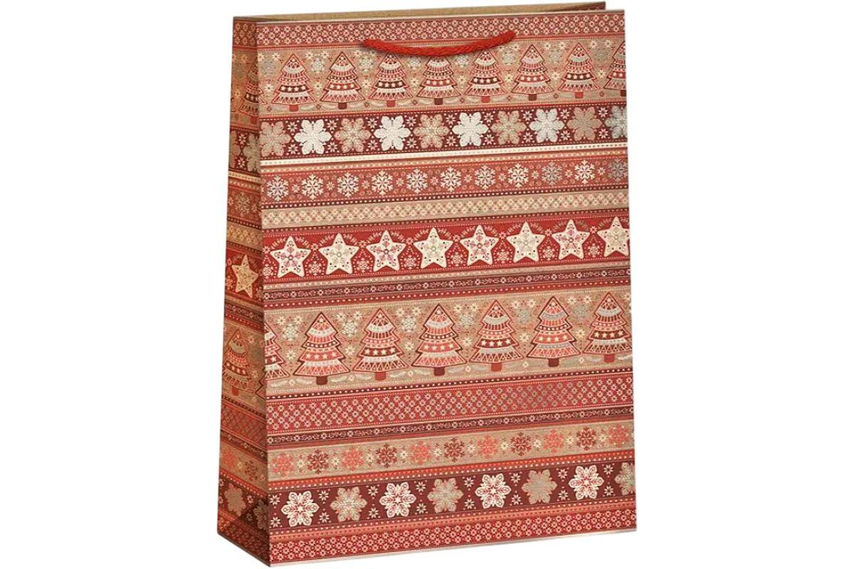 Taška dárková, 31 x 12 x 41,5 cm, papírová, vánoční, natur, design 0079