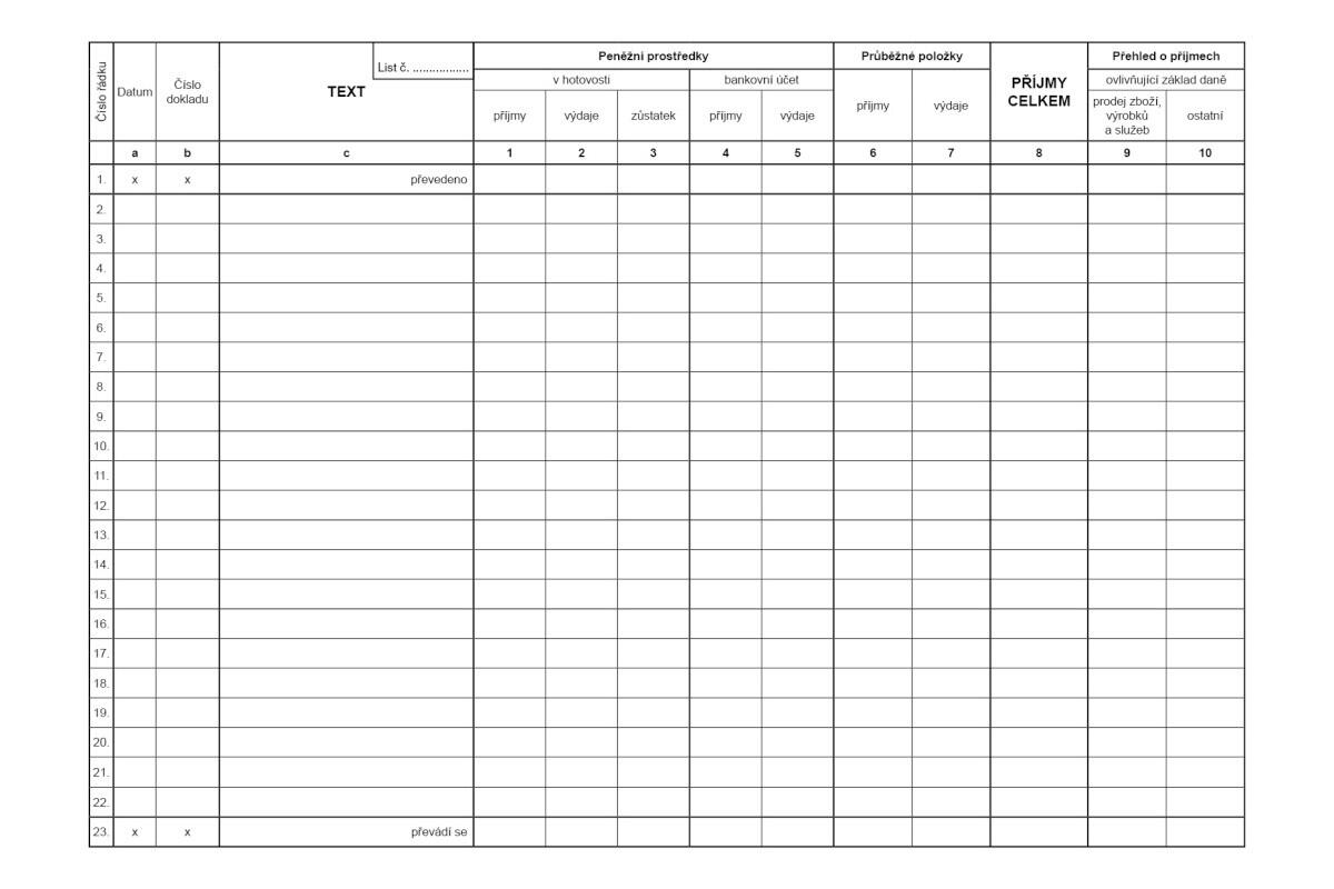 - daňová evidence - peněžní deník pro neplátce DPH