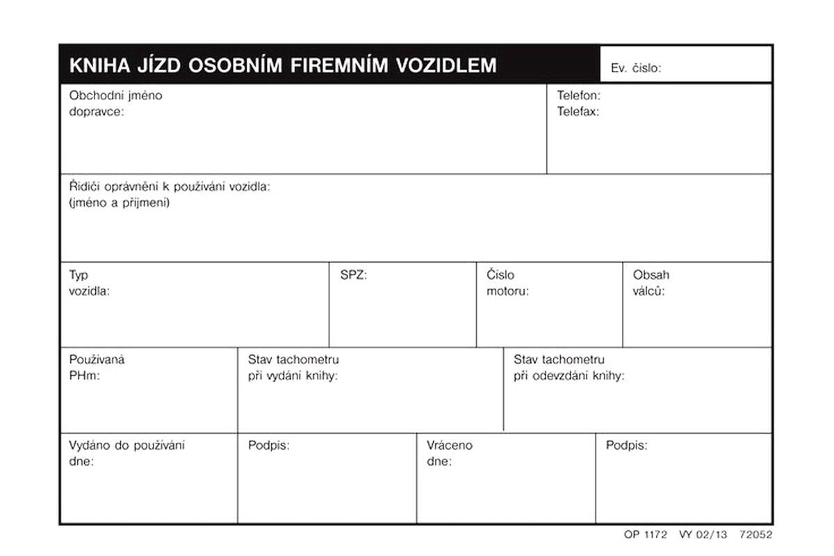 Tiskopis Kniha jízd firemního vozidla Optys, A6, 32 listů