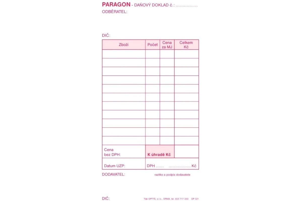Tiskopis Paragon obchodní Optys, 75x148 mm, samopropisovací, 50 listů