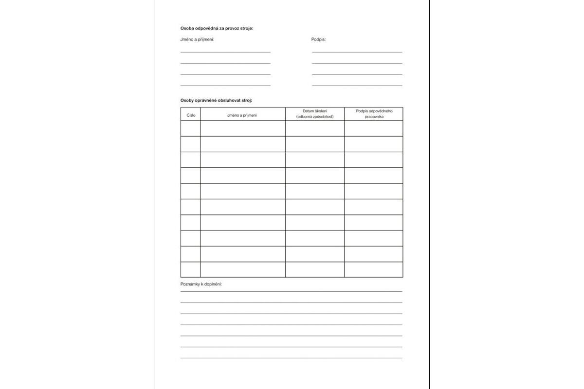 Tiskopis Provozní deník stroje Optys, A4, 22 listů
