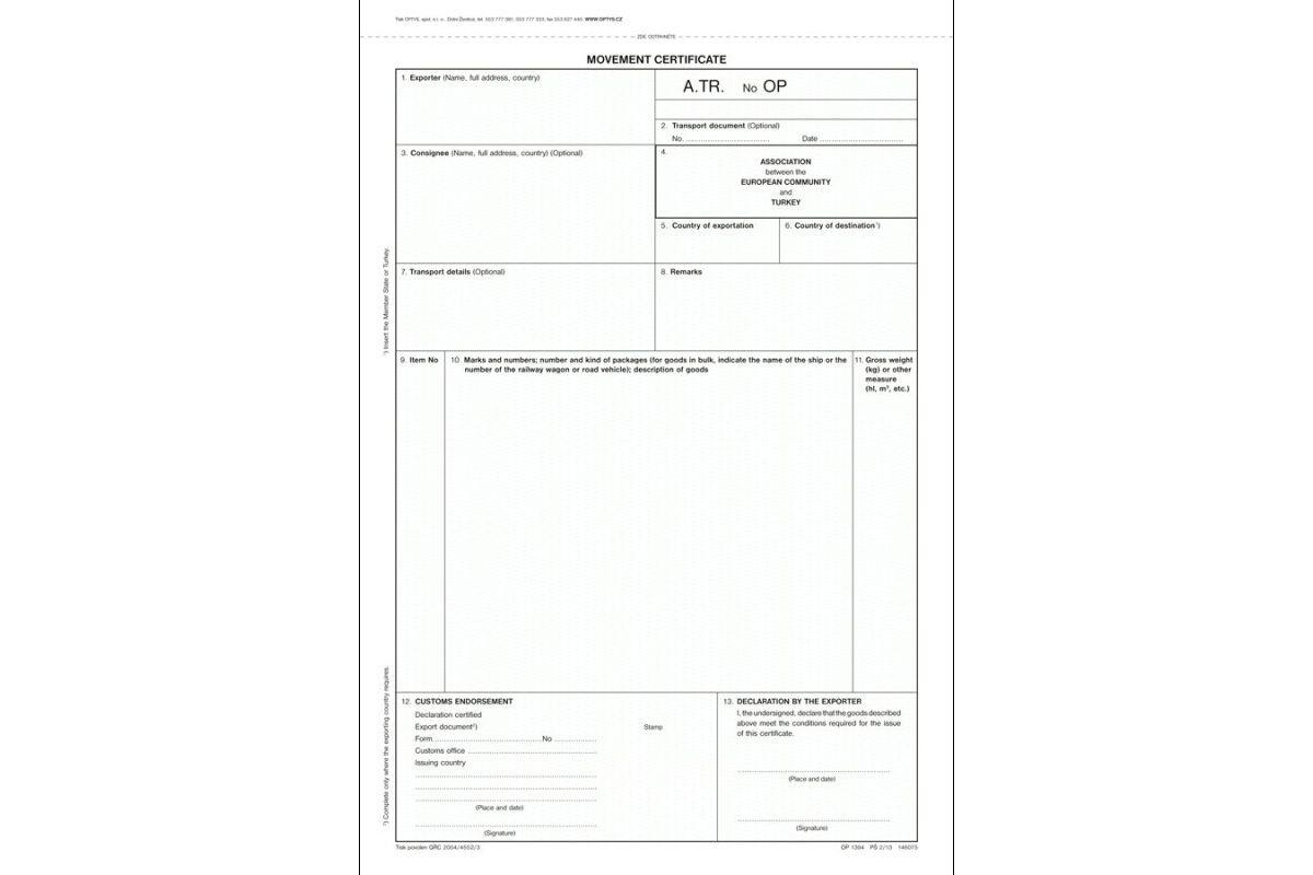 Tiskopis Průvodka osvědčení ATR Optys, A4, číslovaná, 1+2 listy
