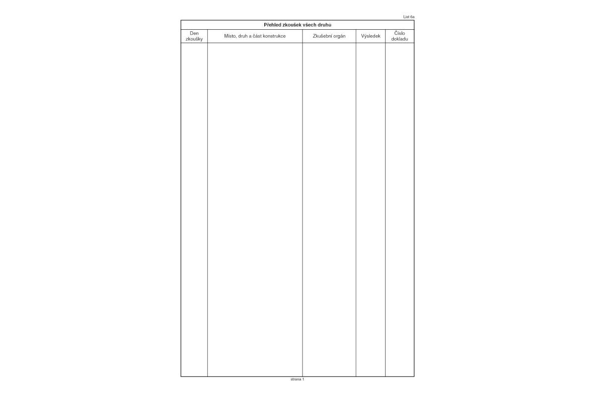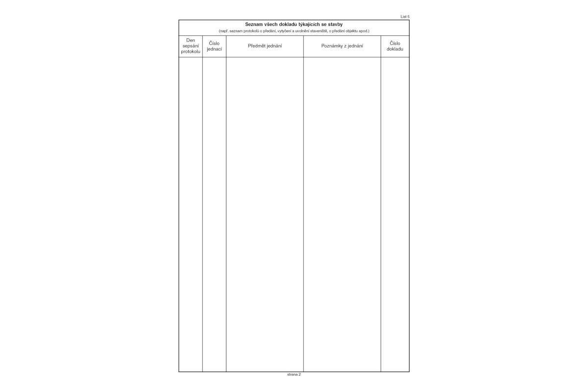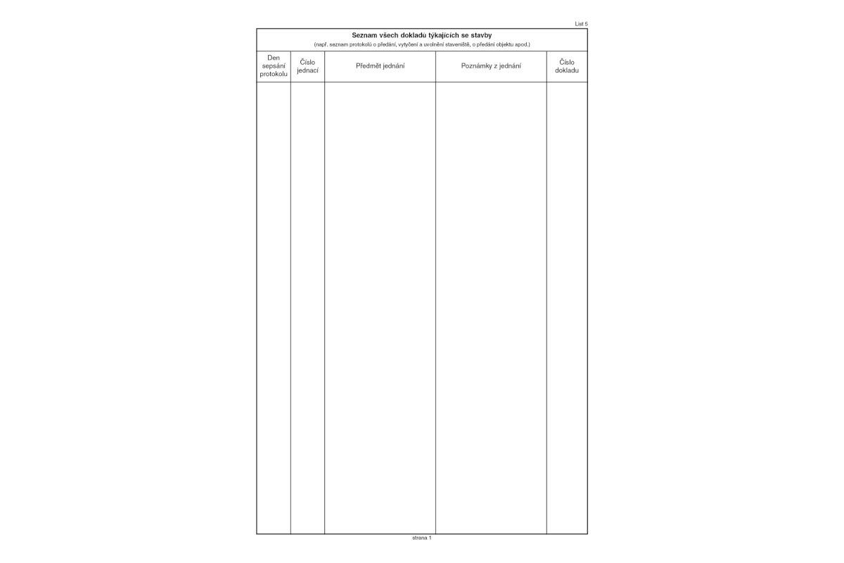 - seznam technické dokumentace stavby, jejich změn a doplňků (list 7a)