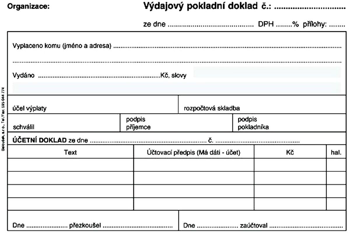 | 1112050 | Tiskopis Výdajový pokladní doklad pro podvojné účetnictví Baloušek, A6, 50 listů | ne |