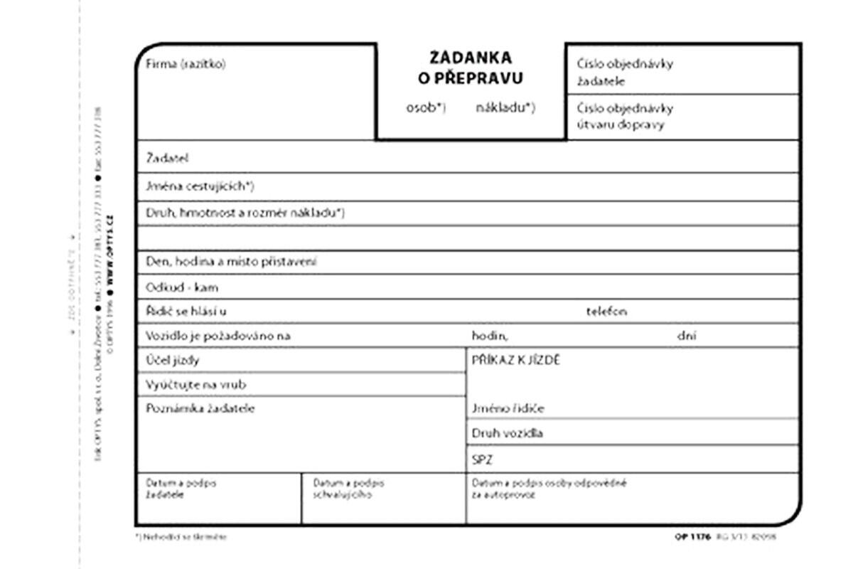 Tiskopis Žádanka o přepravu osob Optys, A6, 100 listů