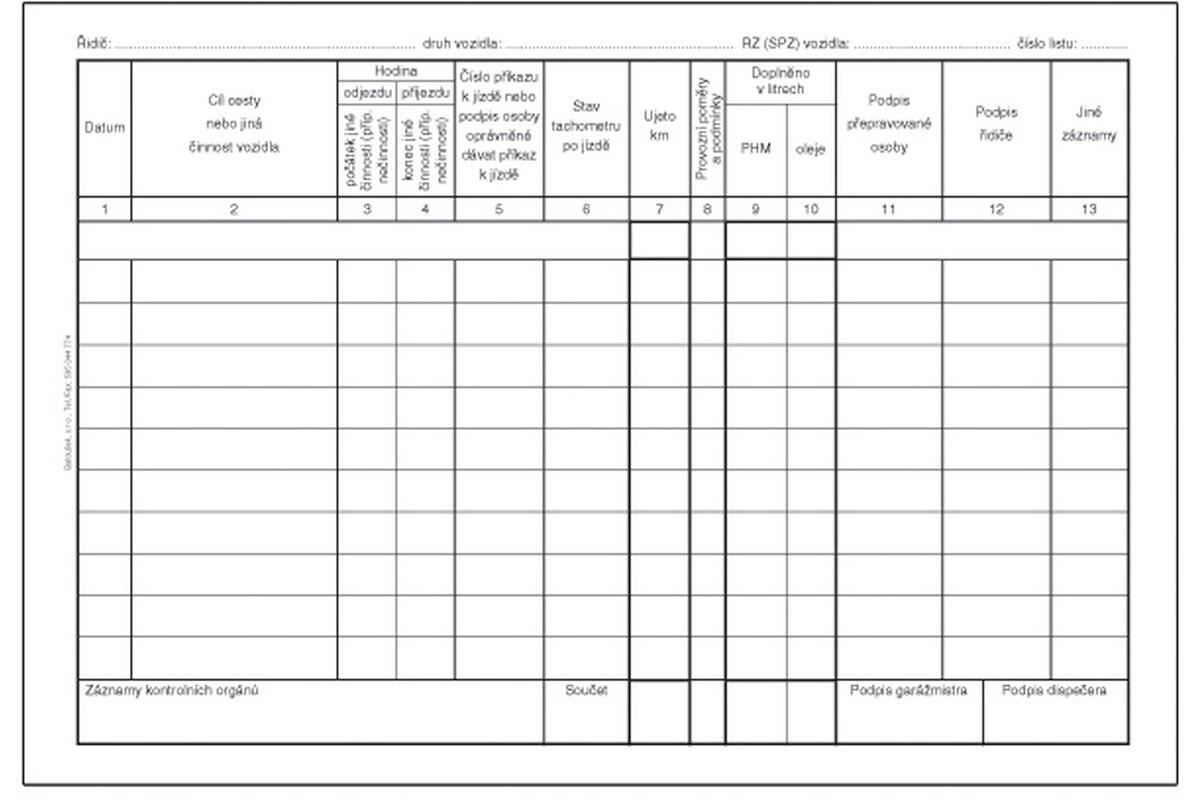 Tiskopis Záznam o provozu osobního vozidla Baloušek, A5, 50 listů