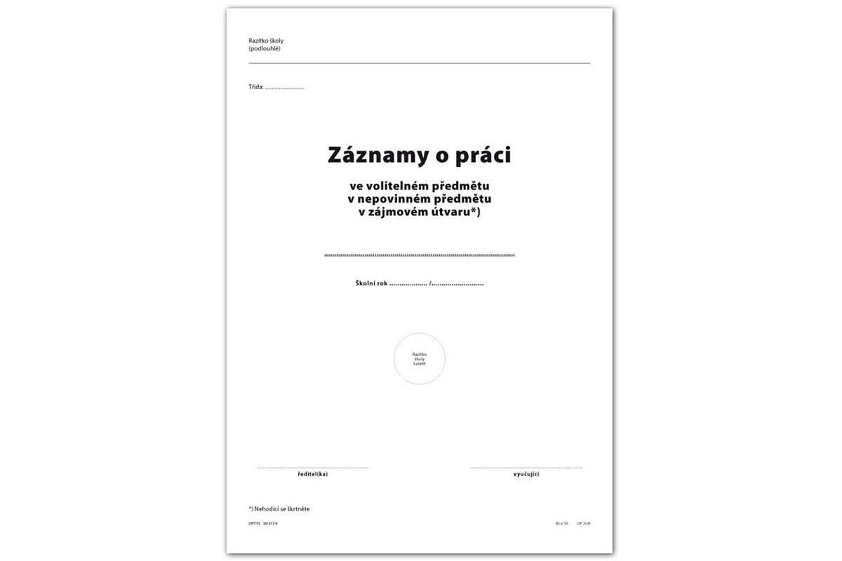 Tiskopis Záznamy o práci v nepovinném předmětu, zájmovém útvaru Optys, obal, dvoulist A4