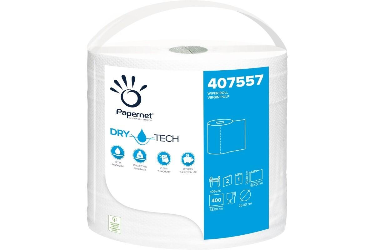 Utěrka papírová na roli Papernet Dry Tech 407557, 2vrstvá, průmyslová, celulóza, ø 25 cm, 152 m, bílá