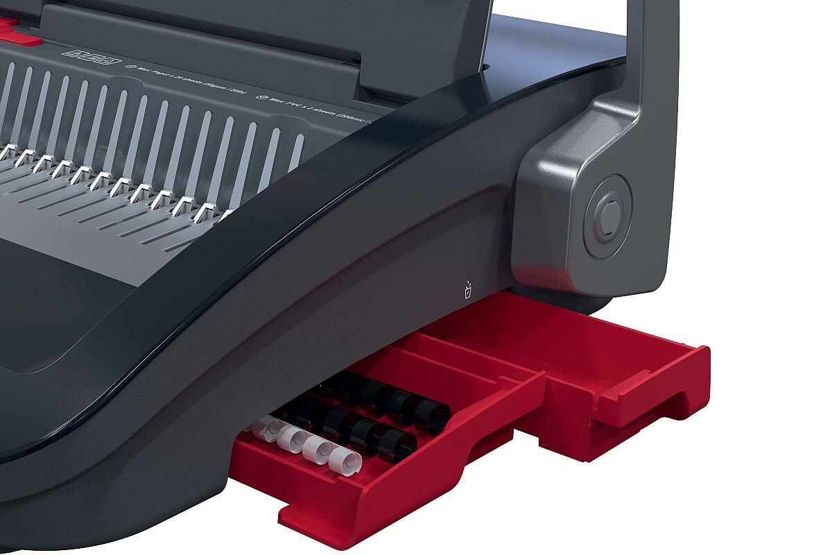 - svazuje až 240 listů formátu A5/A4 (80 g/m²) najednou pomocí hřbetu o šířce 28 mm