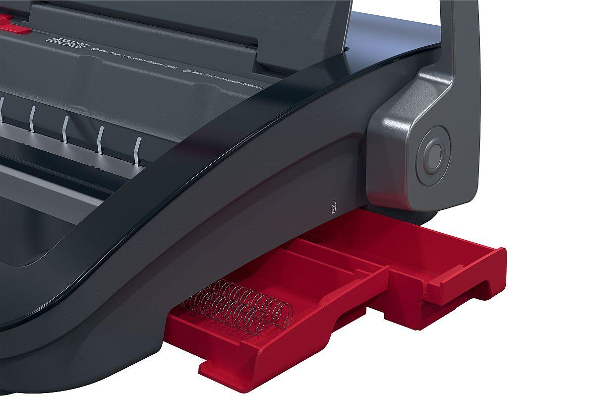 - svazuje až 125 listů formátu A5/A4 (80 g/m²) najednou pomocí drátu o průměru 14 mm
