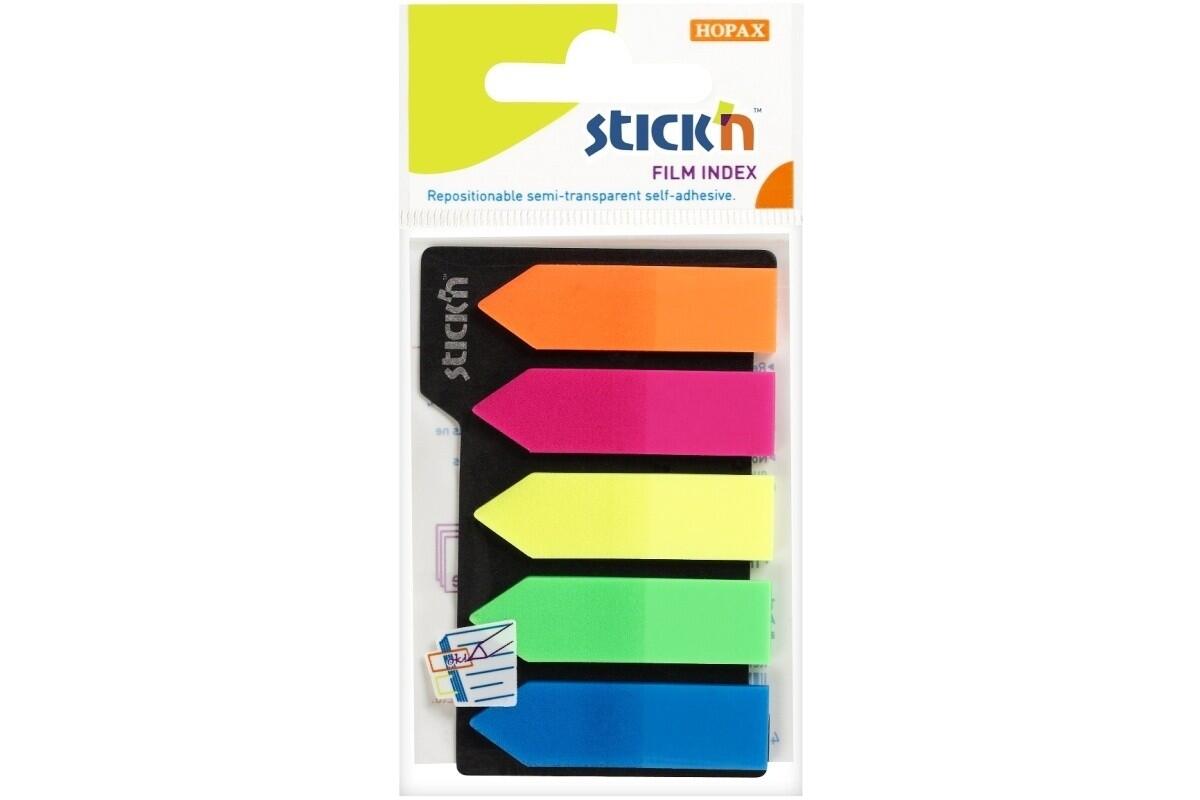| 1245505 | Záložka samolepicí Stick'n by Hopax, 42 x 12 mm, plastová, šipka, 5 x 25 lístků, neonový mix |