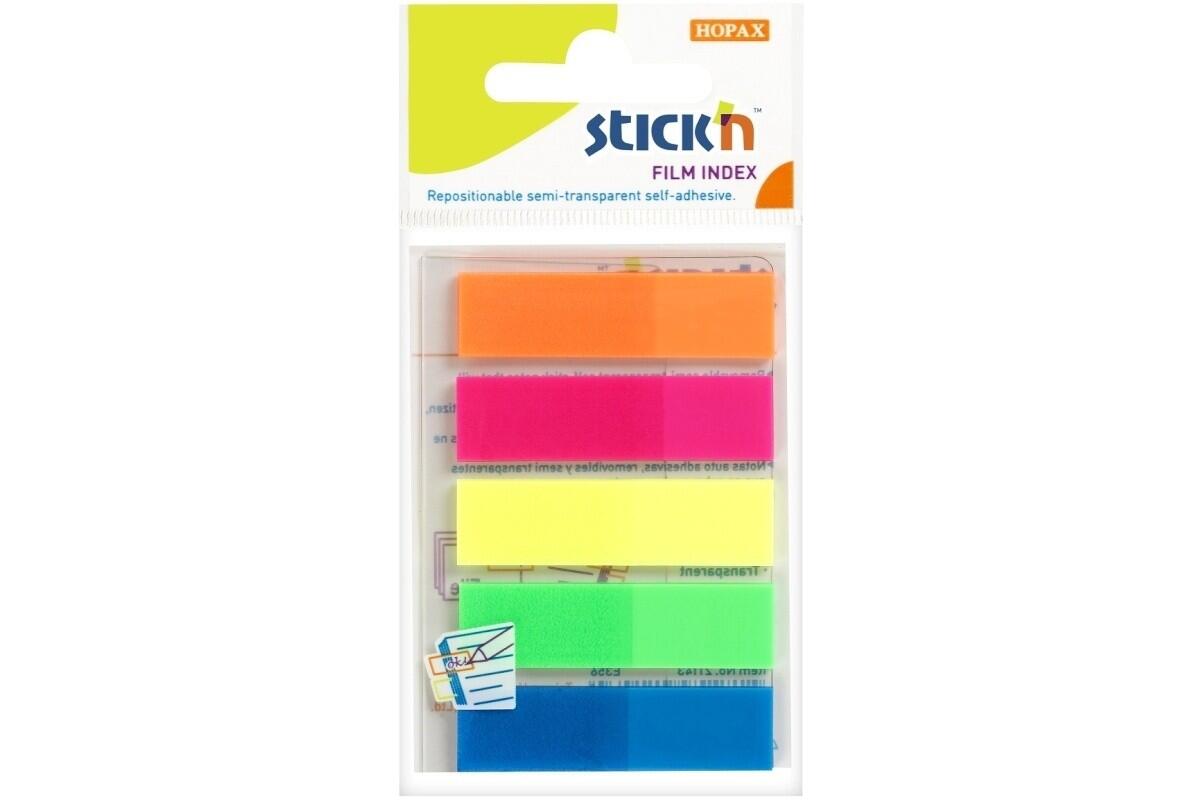 Záložka samolepicí Stick'n by Hopax, 42 x 12 mm, plastová, 5 x 25 lístků, neonový mix