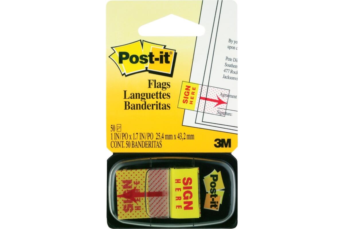Záložka samolepicí Z 3M Post-it, 25,4 x 43,2 mm, plastová, symbol podepsat zde, 50 ks, žlutá
