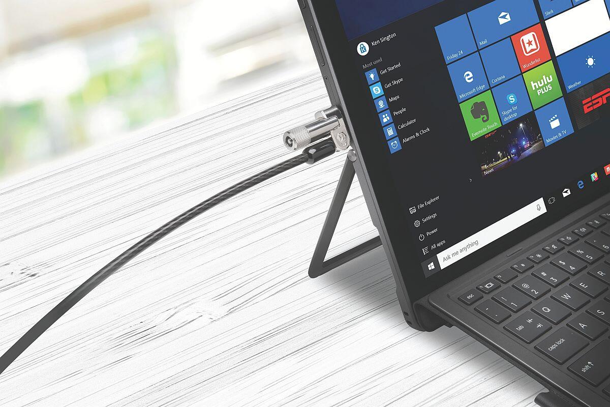 - kompaktní hlava zámku (průměr 10 mm) byla navržena tak, aby vyhovovala požadavkům velmi tenkých zařízení vybavených zabezpečovací zdířkou Kensington Nano Security Slot™