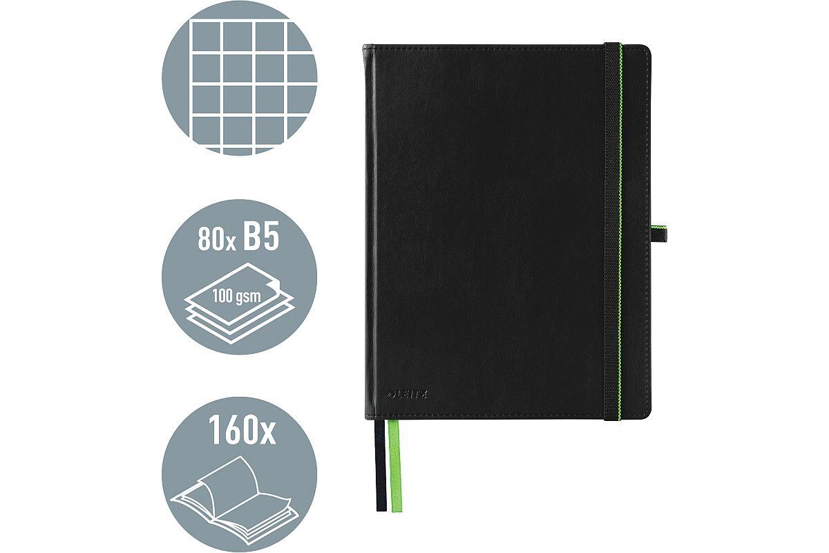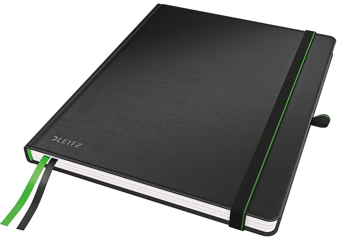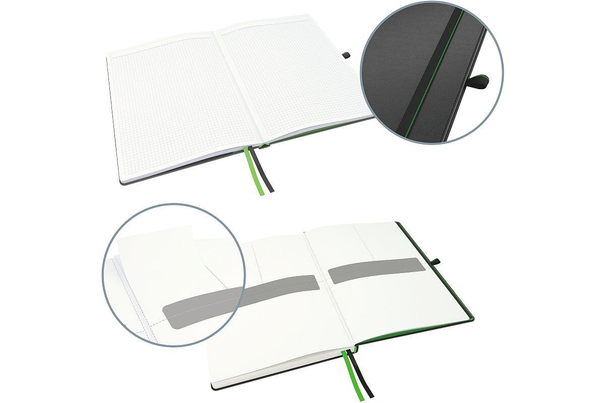 Zápisník velikost iPAD lepený Leitz Complete, s gumičkou, čtverečkovaný, 80 listů, černý
