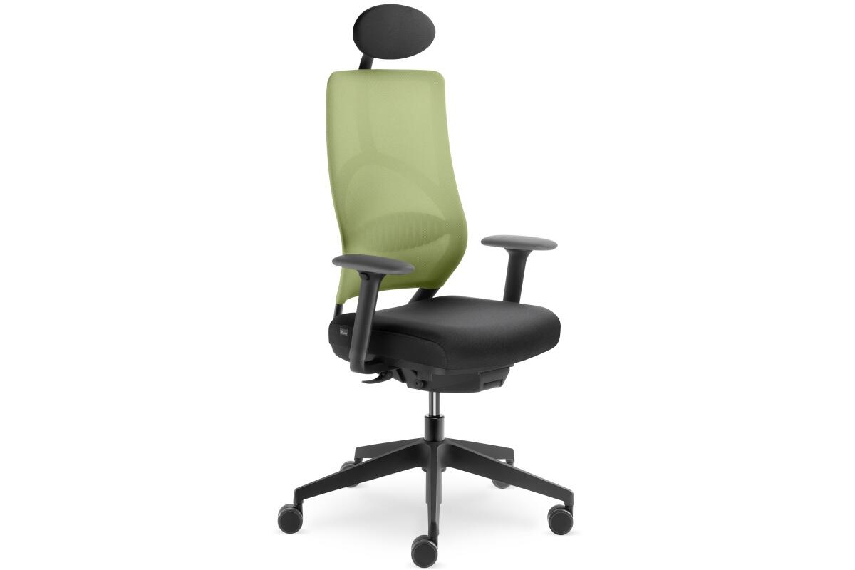 Židle kancelářská Arcus 240-SYAC, hlavová opěrka, bederní opěrka, područky BR-209, kolečka pogumovaná, sedák a HO látka 60999 černá, opěrák síť U68056 zelená