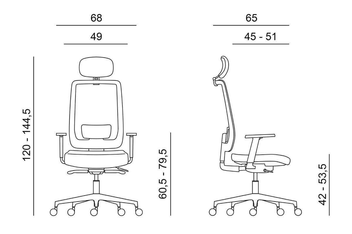 - kancelářská židle s vysokým opěrákem se sítí a podhlavníkem